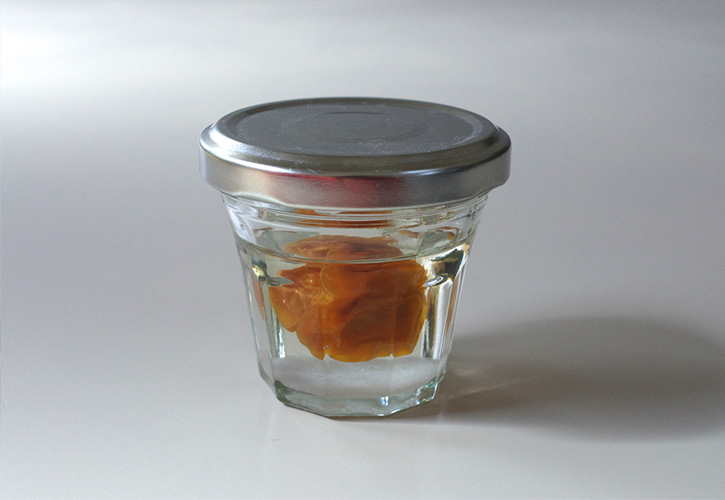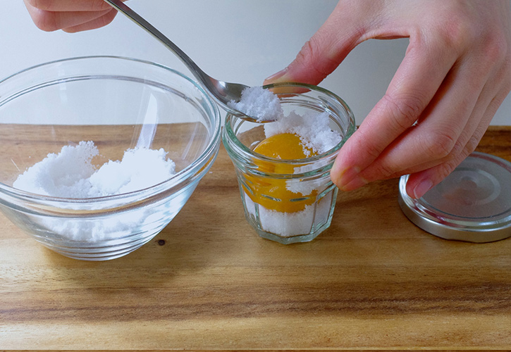 小さな空き瓶に、梅の実と同量(g)の砂糖を詰めます。